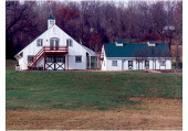 An interior view of the five-stall stable in Middleburg, VA – there’s a full loft, five stalls, grooming stall, wash stall, tack room, feed room and a half bath. The same comfort and warmth of the exterior are perfectly captured inside as well.